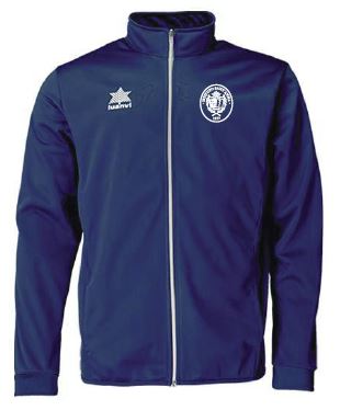 Giacca della tuta blu personalizzata con ricamo logo scuola.