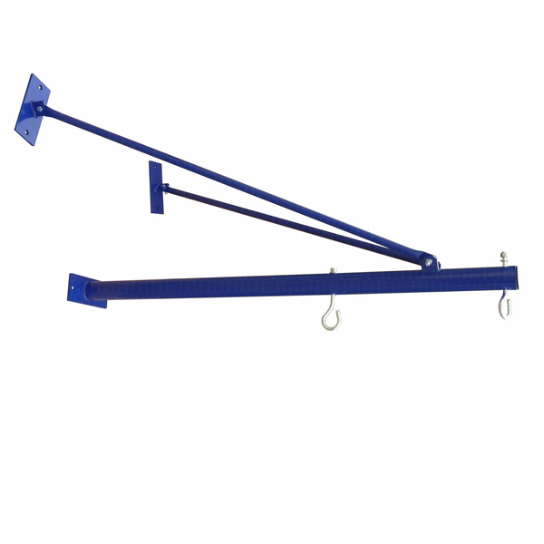 Mensola per sospensione anelli in tubolare di acciaio diam.mm.70, controventato verniciato a fuoco, sporgenza 152 da fissare a parete ad altezza fissa. Anelli e funi escluse